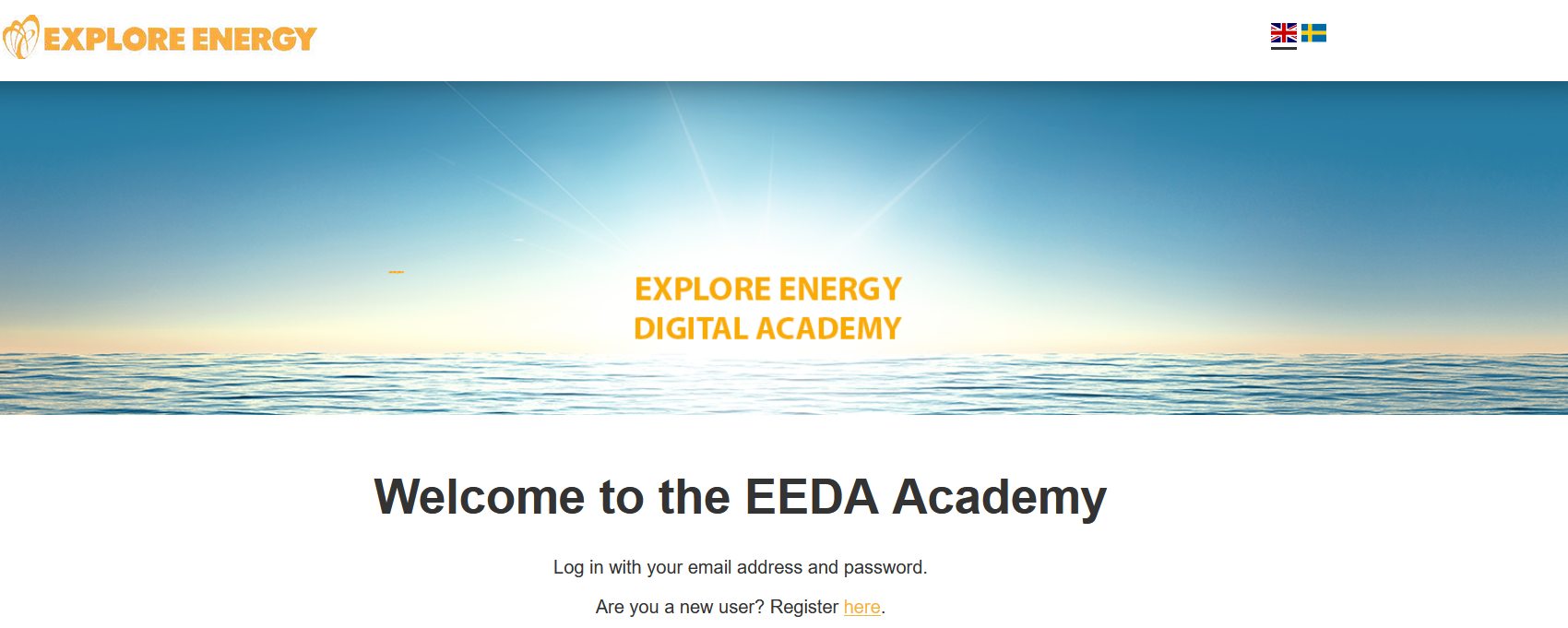 The login page of the EEDA Academy can be seen below: